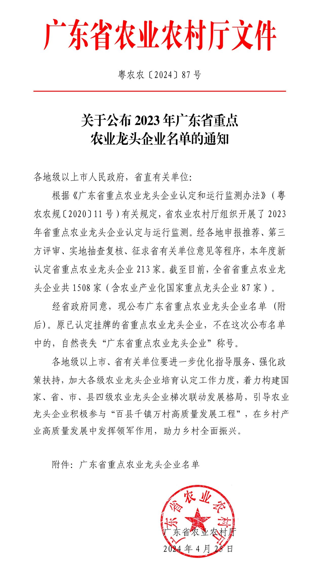 近日,廣東省農(nóng)業(yè)農(nóng)村廳公布了2023年廣東省重點(diǎn)農(nóng)業(yè)龍頭企業(yè)名單,廣州金水動(dòng)物保健品有限公司(以下簡(jiǎn)稱:廣州金水)經(jīng)申報(bào)推薦、第三方評(píng)審、實(shí)地抽查復(fù)核、征求省有關(guān)單位意見等程序,被認(rèn)定為“2023年廣東省重點(diǎn)農(nóng)業(yè)龍頭企業(yè)”。這是廣州金水在獲評(píng)市級(jí)農(nóng)業(yè)龍頭企業(yè)后,又得到省農(nóng)業(yè)農(nóng)村廳的認(rèn)可,再獲殊榮。
