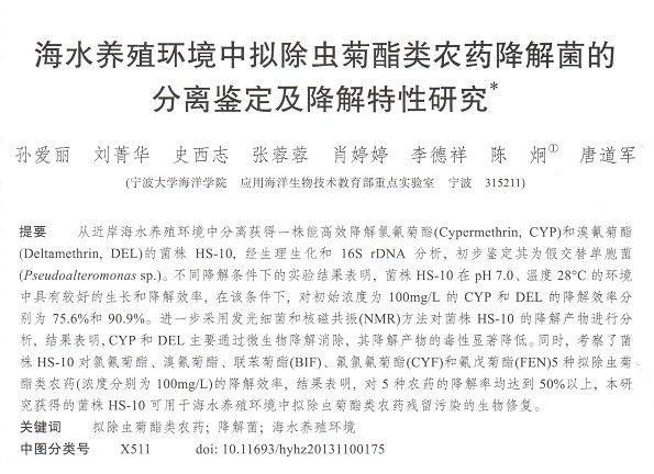 海水養(yǎng)殖環(huán)境中擬除蟲(chóng)菊酯類(lèi)農(nóng)藥降解菌的分離鑒定及降解特性研究