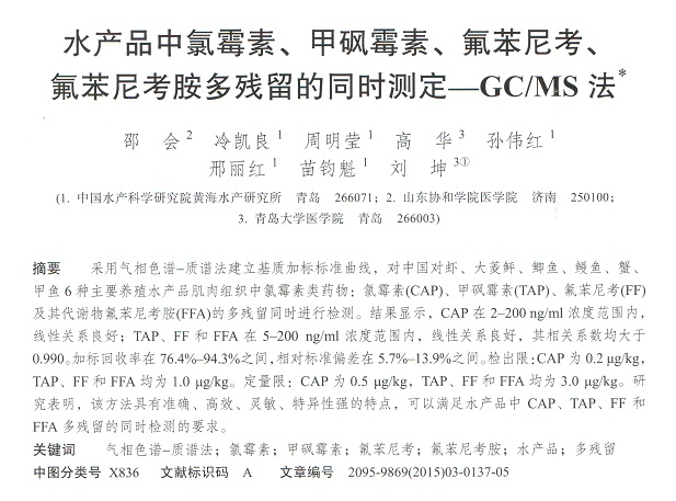水產(chǎn)品中氯霉素、甲砜霉素、氟苯尼考、氟笨尼考胺多殘留的同時(shí)測(cè)定——GC/MS法